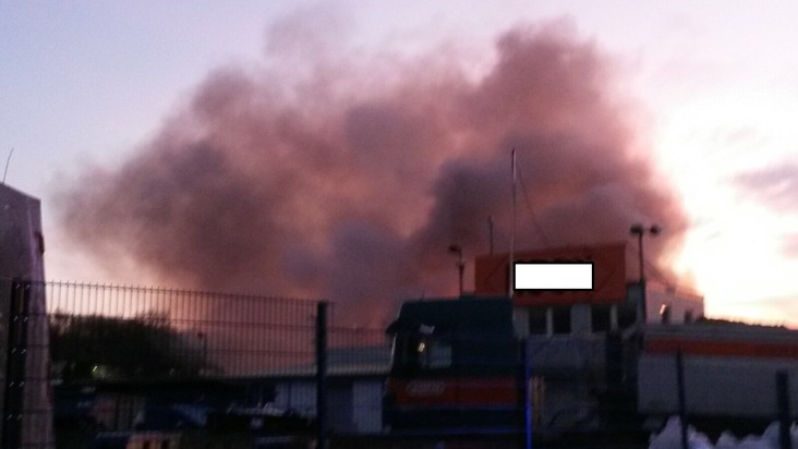 Eine große schwarze Rauchwolke zog am frühen Samstagabend aus dem Gewerbegebiet Steinfurt in Richtung Stolberger Innenstadt. Zahlreiche Anrufer meldeten gegen 18.57 Uhr über Notruf ein Brandereignis im Gewerbegebiet Steinfurt mit einer sehr starken Rauchentwicklung. Sofort wurden von der Einsatzzentrale der Feuer- und Rettungswache Stolberg die Einsatzkräfte der Hauptwache und der Löschgruppen Atsch, Donnerberg und Mitte alarmiert. Noch während der Anfahrt in das Gewerbegebiet auf dem Donnerberg meldete der vorbei fliegende Rettungshubschrauber ein großes Schadensfeuer in einem Gewerbegebiet an der Straße "Steinfurt". Nachdem die ersten Kräfte unter Leitung von Amtsleiter Andreas Dovern die Einsatzstelle erreicht und sich einen ersten Überblick verschafft hatten, wurden weitere zahlreiche Einheiten alarmiert. Die restlichen Löschgruppen des 2. Zuges und der 5. Zug wurden in die Steinfurt beordert, der 4. Zug stellte auf der Feuerwache den Grundschutz für das Stadtgebiet sicher. Zur Unterstützung des Einsatzleiters und zur Koordination der Maßnahmen wurde der auf der Stolberger Wache stationierte Einsatzleitwagen der StädteRegion mit der Unterstützungsgruppe eingesetzt. Im Außengelände des Betriebes brannte auf einer Fläche von über 200 Quadratmetern der meterhoch aufgestapelte Restmüll in einer offenen Müllbox. Die Flammen drohten auf eine direkt angrenzende Halle überzugreifen. In der Halle sind neben Gefahrstoffen auch ein Schadstofflager untergebracht. Sofort wurde eine massive Riegelstellung mit mehreren Strahlrohren von zwei Seiten sowie über die Drehleiter zum Schutz der Halle vorgetragen und gleichzeitig ein Löschangriff durchgeführt. Aufgrund der starken Rauchentwicklung wurden die Anwohner über Radio und der Warn-App "Nina" des Bundesamtes für Bevölkerungsschutz und Katastrophenhilfe über die Rauchwolke informiert und aufgefordert, vorsichtshalber Fenster und Türen zu schließen. Parallel wurde die Messeinheit Süd der StädteRegion Aachen angefordert, um im Stadtgebiet Luftmessungen durchzuführen. Alle Messungen ergaben keine Feststellung von erhöhten Schadstoffen, die Messungen verliefen negativ. Die Riegelstellung zum Schutz der Halle war erfolgreich. Ein Übergreifen des Brandes auf die angrenzende Halle konnte durch den massiv vorgetragenen Einsatz verhindert werden. Auch die Löschmaßnahmen zeigten deutliche Wirkung. Nach rund 1,5 Stunden Einsatzdauer konnte "Feuer unter Kontrolle" gemeldet werden. Mit einem Radlader der betroffenen Firma wurde der Restmüll auseinander gezogen und gezielt gelöscht. Gegen 22.30 Uhr wurden die ersten der rund 110 Einsatzkräfte aus dem Geschehen ausgelöst. Die Löschgruppe Donnerberg führte noch bis etwa 3.30 Uhr eine Brandwache durch. Am frühen Sonntagmorgen wurde die Brandstelle nochmals kontrolliert. Die Straße "Steinfurt" war während der Löschmaßnahmen komplett gesperrt. Von der Feuerwehr Eschweiler wurde zur Verpflegung der Feuerwehrleute die Komponente "Betreuung/Verpflegung" und von der StädteRegion der Gerätewagen Atemschutz entsandt. Der Fachberater Chemie der StädteRegion war ebenfalls zur Beurteilung der Messwerte der Luftmessung vor Ort. Das THW Stolberg leuchtete unter Leitung von Thomas Johnen die Einsatzstelle mit mehreren Helfern aus. Kreisbrandmeister Bernd Hollands und ein Vertreter der Unteren Wasserbehörde machten sich vor Ort ein Bild der Lage.