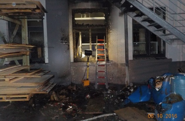 In der Nacht von Freitag auf Samstag wurde die Feuerwehr Lüdenscheid zu einem Containerbrand in die Lösenbacher Landstr. alarmiert. Da der Container gemäß Meldung direkt an einem Gebäude stand, wurde automatisch die Alarmstufe erhöht. Bei Eintreffen der Feuerwehr brannten mehrere mit Kunststoffabfällen gefüllte Mülltonnen. Durch die Nähe zum Gebäude drohte das Feuer auf die Betriebsräume einer Schreinerei überzugehen. Mit einem massiven und schnellen Löschangriff konnte ein Durchschlagen des Feuers über ein mittlerweile geplatztes Fenster in den Innenbereich verhindert werden, so dass lediglich Fassadenteile und ein Außenlager in Mitleidenschaft gezogen wurden. "Sowohl der Betreiber der Schreinerei, wie auch die Feuerwehr können froh sein, dass das Feuer zu der nächtlichen Stunde so schnell entdeckt und gemeldet wurde", fasst Einsatzleiter Jörg Weber die Situation zusammen. Nach seiner Einschätzung hätte ein nur 10 Minuten späteres Eingreifen eine Brandausbreitung in das Gebäude nicht mehr verhindern können. Auch der Umstand, dass nach der letzten Fassadensanierung auf ein Wärmedämmverbundsystem auf Polystyrolbasis verzichtet wurde, hat in diesem Fall den Einsatzverlauf und die Schadenshöhe positiv beeinflusst. "Wir können aus den Erfahrungen anderer, ähnlich verlaufender Einsatzszenarien davon ausgehen, dass im Falle einer Gebäudedämmung mit Hartschaum hier eine schnellere Brandausbreitung über eine größere Fläche der Fassade und über mehrere Etagen stattgefunden hätte", resümiert Einsatzleiter Weber, der zugleich Sachbearbeiter im Vorbeugenden Brandschutz ist. Immerhin sei die Temperatureinwirkung auf die Fassade so hoch gewesen, dass die relativ neue Farbe in Teilen weggebrannt war und in anderen Bereichen schon Blasen geschlagen hatte. Für die Dauer des ca. 2-stündigen Einsatzes musste die Lösenbacher Landstr. komplett gesperrt werden. Im Einsatz waren die Feuer- und Rettungswache Lüdenscheid gemeinsam mit den ehrenamtlichen Einheiten der Löschzüge Brügge und Stadtmitte mit ca. 30 Einsatzkräften. Bei den Einsatzmaßnahmen verletzte sich ein Feuerwehrmann leicht.