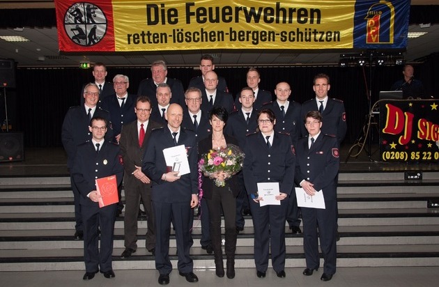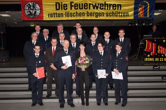 Am Samstag, den 14. Januar veranstaltete der Löschzug Hiesfeld sein Jahresfest 2017 mit dem traditionellem Karbonadenessen in der Aula des Gustav-Heinemann-Schulzentrums. Unter den ca. 200 Gästen befanden sich zahlreiche Förderer der Hiesfelder Wehr sowie Mitglieder der Verwaltung und der politischen Parteien. Insbesondere konnte Löschzugführer Ulrich Borgmann den Bürgermeister der Stadt Dinslaken, Dr. Michael Heidiger sowie den Leiter der Feuerwehr Dinslaken, Udo Walbrodt, willkommen heißen. Der Bürgermeister würdigte in seiner Rede die Leistungen der Wehr und betonte die Bedeutung des ehrenamtlichen Feuerwehrdienstes für das Allgemeinwohl der Bürger. Von den 172 Einsätzen des Löschzuges Hiesfeld im Jahr 2016 hob er besonders die Unwettereinsätze im Stadtgebiet am 30.05.2016 und die anschließenden mehrtägigen Einsätze im Kreisgebiet hervor. Daneben fanden die ehrenamtlichen Helfer im letzten Jahr auch noch Zeit, an mehreren Hiesfelder Schulen Brandschutzerziehungen durchzuführen. 5 Mal wurden Martinszüge der Hiesfelder Schulen und der Werbegemeinschaft Hiesfeld begleitet. Des Weiteren wurden mehr als 1000 Stunden von den Frauen und Männern der Hiesfelder Wehr in die Aus- und Fortbildung investiert. Für die geleistete Arbeit sprach er der Wehr seinen persönlichen, sowie den Dank von Rat und Verwaltung aus.