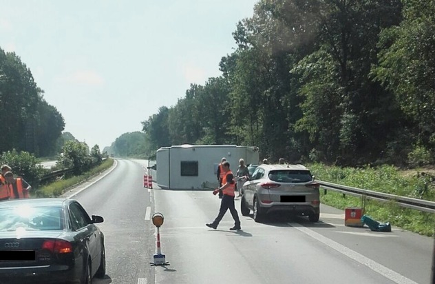 Heute um 10:50 Uhr wurde die Feuerwehr Dinslaken zu einem Verkehrsunfall mit zwei beteiligten Fahrzeugen und einem Wohnwagen auf der BAB 3 Fahrtrichtung Oberhausen alarmiert. Der Unfall ereignete sich zwischen der Anschlussstelle Hünxe und Dinslaken-Nord. Bei dem Verkehrsunfall wurden zwei Personen verletzt die durch den Rettungsdienst ins Krankenhaus transportiert wurden. Seitens der Feuerwehr wurden die Fahrzeuge stromlos geschaltet sowie auslaufende Betriebsmittel abgestreut. Des Weiteren wurde durch die Feuerwehr der Brandschutz sichergestellt und in Verbindung mit der Polizei die Einsatzstelle abgesichert. Während der Einsatzmaßnahmen kam es zeitweise zu einer Vollsperrung der Fahrtrichtung Oberhausen. Der Einsatz konnte gegen 12:10 Uhr beendet werden. Im Einsatz waren Einsatzkräfte der Einheit Hauptwache sowie der Rettungsdienst.