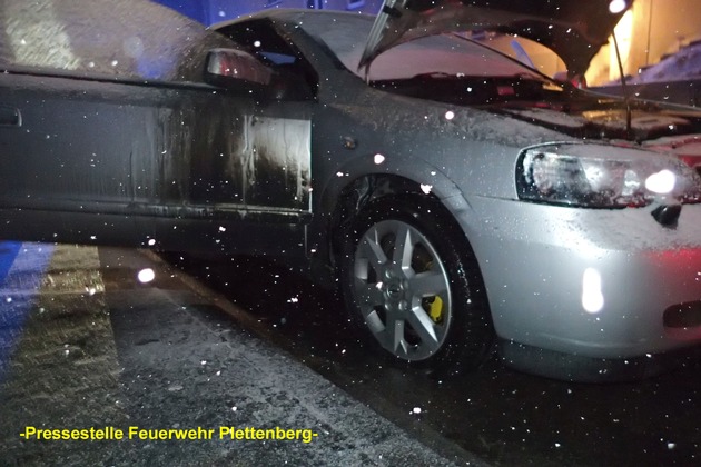 Aus bislang noch unbekannter Ursache gerieten in der vergangenen Nacht gegen 01:00 Uhr zwei PKW am Beiese im Ortsteil Oesterhammer in Brand. Anwohner bemerkten die brennenden Fahrzeuge, alarmierten umgehend die Feuerwehr und versuchten den Brand zu löschen, was auch gelang. Gegen 01:10 Uhr wurden die hauptberuflichen Kräfte der Plettenberger Feuerwehr von der Feuer-und Rettungsleitstelle des Märkischen Kreises zu einem Fahrzeugbrand am Beiese alarmiert. Bei Eintreffen der Einsatzkräfte war der Brand bereits gelöscht, die Feuerwehr musste lediglich die Brandstellen kontrollieren und ausgelaufene Betriebsstoffe ab streuen. Zur Sachschadenshöhe und Brandursache kann die Feuerwehr keine Auskunft erteilen. Die Polizei hat die Ermittlungen aufgenommen.