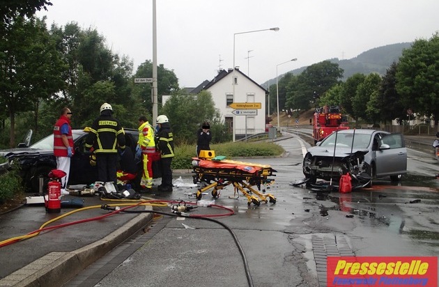 Zu einem Verkehrsunfall wurden am Samstagmorgen kurz nach 07:00 Uhr die hauptberuflichen Kräfte der Plettenberger Feuer- und Rettungswache alarmiert. Im Ortsteil Bremckerlinde war es aus noch ungeklärter Ursache bei einem Abbiegevorgang zu einer Kollision zwischen zwei Fahrzeugen gekommen. Den Einsatzkräften bot sich vor Ort ein Trümmerfeld. Da beide Fahrer der Fahrzeuge, eine 53-jährige Frau und ein 80-jähriger Mann, bei dem Unfall verletzt wurden, musste ein weiterer Rettungswagen und ein Notarzt nachalarmiert werden. Ein Kind, welches ebenfalls in einem der PKW gesessen hatte, blieb glücklicherweise bei dem Unfall unverletzt. Nach notärztlicher Versorgung und Verdacht auf eine schwere Wirbelsäulenverletzung bei der 53-jährigen, entschieden sich die Rettungskräfte für eine patientenorientierte Rettung aus dem Fahrzeug. Hierzu musste die Feuerwehr mit Hilfe von schwerem hydraulischem Rettungsgerät eine große Seitenöffnung in das Fahrzeug schneiden. Die mittlere Türsäule wurde entfernt, bevor die Verletzte schonend aus dem Fahrzeug gerettet werden konnte. Bei dem 80-jährigen Fahrer diagnostizierte der Rettungsdienst eher leichtere Verletzungen. Beide Verletzte wurden zu einer genaueren Untersuchung zunächst ins Plettenberger Krankenhaus verbracht. Die Frau wurde im weiteren Verlauf per Rettungshubschrauber aus Gießen in eine Unfallklinik nach Dortmund verlegt. Neben der Patientenrettung musste die Feuerwehr den Brandschutz an der Unfallstelle sicherstellen und auslaufende Betriebsmittel aufnehmen. Während der Rettungs- und Bergungsarbeiten wurde der Verkehr halbseitig an der Unfallstelle vorbeigeführt. Zur genauen Unfallursache und zur Sachschadenshöhe kann die Feuerwehr keine Auskunft erteilen.