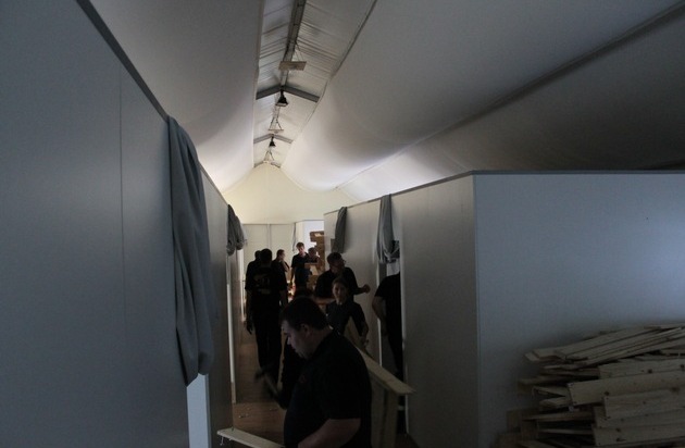 Nach etwas mehr als neun Monaten (02.11.2015 bis 17.8.2016) unterstützte die Freiwillige Feuerwehr Werne erneut den Kreis Unna beim Thema Flüchtlinge: Diesmal stand der Abbau der im letzten Jahr aufgestellten Betten in der Stockumer Flüchtlingsunterkunft am Werthweg auf dem Programm. Von 17:00 bis 19.30 Uhr schraubten am gestrigen Mittwoch (17.08.2016) rund 30 Kameradinnen und Kameraden die insgesamt 400 Liegeplätze in den drei Zelten in Stockum wieder auseinander, sortierten Schrauben und Muttern, Gestelle sowie Lattenroste. Was sich zunächst traurig anhört ist eine gute Nachricht, denn die bisherigen Bewohner haben zwischenzeitlich - wie geplant - eine neue Unterkunft erhalten. Die ordentlich gestapelten und sortierten Einzelteile der Schlafplätze sollen in Kürze abtransportiert werden. Das ist der erste Schritt für den baldigen Abbau der Leichtbauhallen und somit der Überführung der Kardinal-von-Galen-Turnhalle und der zugehörigen Parkplätze in ihre angestammte Nutzung.