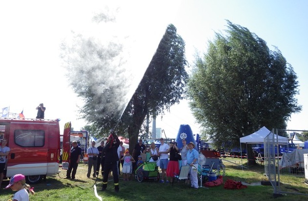 Werne / Bergkamen / Düsseldorf | Montag | 29.08.2016 Am vergangenen Wochenende verbrachten je drei Kameraden der Freiwilligen Feuerwehren Bergkamen und Werne zwei ereignisreiche Tage auf der Blaulichtmeile des NRW-Tages in Düsseldorf. Ziel war es, das Sonderlöschfahrzeug VLF Cobra aus dem Ehrenamtsprojekt des Verbandes der Feuerwehren NRW (VdF NRW) und des Ministeriums für Inneres und Kommunales NRW (MIK NRW) vorzustellen. Die Präsentation erfreute sich großer Beliebtheit insbesondere bei Familien mit Kindern, die die Löschlanze gerne selber bedient hätten. Aber 300 bar Ausgangsdruck und ein Schneidmittel auf Eisensilikat-Basis sind leider kein Spielzeug. So musste der Knopf zum Einschalten des Blaulichts, die LED-Handlampe oder der Blick durch die Wärmebildkamera reichen. Natürlich interessierte sich auch das Fachpublikum für das Fahrzeug und begutachtete das System - trotz des teils sehr heißen Wetters - ausgiebig. Weitere Informationen zum schwedischen Löschsystem für den sogenannten "offensiven Außenangriff" finden sich auf der Seite der FeuerwEHRensache unter: http://www.feuerwehrensache.nrw.de/pilotprojekte/arbeitsgruppe-2/technik/technik/