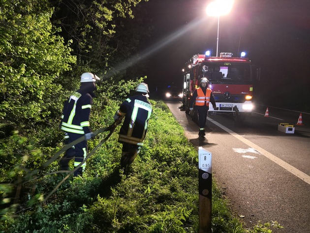 In der Nacht zu Mittwoch den 25.04.2018 um 00:18 Uhr wurde der Löschzug 1 der Freiwilligen Feuerwehr Werne per digitalem Meldeempfänger in die Nordlippestraße alarmiert. Das Stichwort lautete "TH_1 - Unterstützung bei der Bergung eines PKW, Bäume müssen gefällt werden". Auf gerader Fahrbahn geriet ein PKW von der Fahrbahn ab und kollidierte neben der Fahrbahn mit mehreren Bäumen. Der PKW brach dabei mehrere Bäume ab und kam stark deformiert und eingeklemmt zwischen Bäumen abseits der Straße zum Stillstand. Die zwei Insassen des PKW hatten großes Glück, das keine massiven Bäume durch den PKW getroffen wurden. Beide konnten sich selbst aus dem PKW befreien. Der Löschzug 1 der Freiwilligen Feuerwehr Werne wurde im Rahmen der Amtshilfe durch die Polizei alarmiert, um Bäume zu fällen um den PKW aus dem Randbereich der Straße zu bergen.