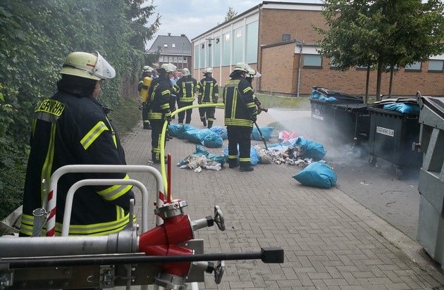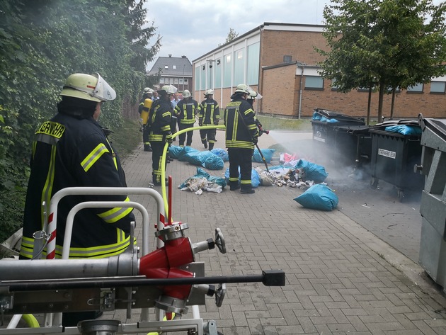 Am Mittwochabend um 18:49 Uhr wurde der Löschzug 1 der Freiwilligen Feuerwehr Werne zu einem Containerbrand in die Bahnhofstraße in Werne alarmiert. Ein Container mit Müll an einer Sekundarschule ist vermutlich durch unsachgemäße Entsorgung einer Zigarettenkippe in Brand geraten. Erste Löschmaßnahmen durch Mitarbeiter der Haustechnik des Objektes konnten mit Hilfe eines Feuerlöschers bereits einleiten werden. Die Feuerwehr entleerte den Container und verteilte den teils brennenden Unrat, damit dieser mit dem Schnellangriff abgelöscht werden konnte. Mit einem C-Strahlrohr und der Wasserversorgung aus dem Fahrzeugtank des Hilfeleistungslöschfahrzeug konnte schnell "Feuer aus" gemeldet werden. Die Einsatzstelle wurde mit Besen und Schüppe gesäubert an die Polizei übergeben. Nach der Kontrolle der umliegenden Container mit der Wärmebildkamera auf Glutnester und das zusätzliche Fluten des Containers, rückten die Freiwilligen Einsatzkräfte wieder ab. Im Einsatz waren 9 Einsatzkräfte mit dem Hilfeleistungslöschfahrzeug und dem ELW sowie die Polizei aus Werne.