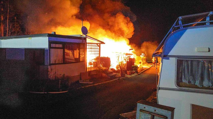 FW-CW: Zwei Campingwagen brennen vollständig ab