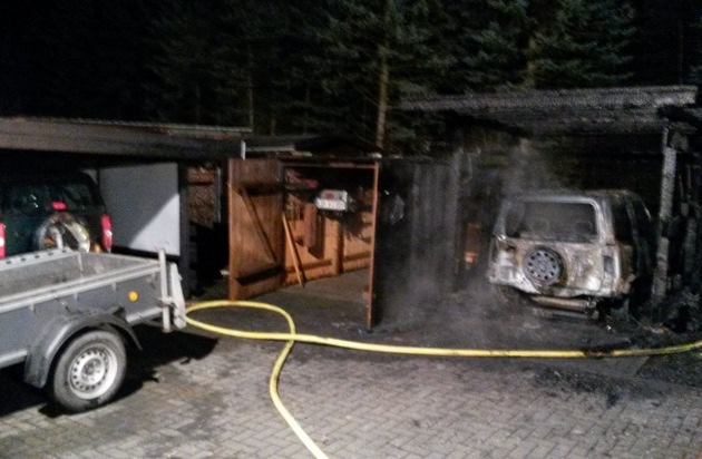 Durch das Feuer wurde jedoch das Caport und der dort abgestellte PKW zerstört, auch der angrenzende Schuppen und ein in der Nähe abgestellter PKW wurden durch das Feuer beschädigt.