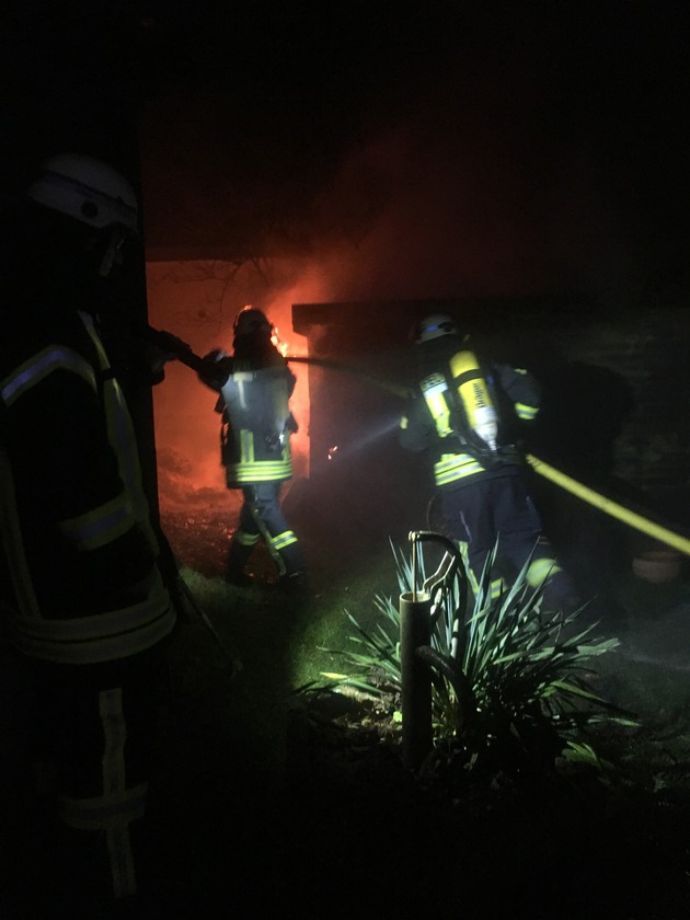 Bei Eintreffen der Einsatzkräfte brannte ein Schuppen in voller Ausdehnung.