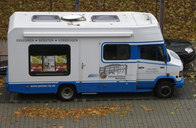 Wie schon angekündigt und berichtet, verstärkt die Polizei zu Beginn der "dunklen Jahreszeit" ihre Präventionsarbeit. Auch im Landkreis Südwestpfalz ist das Sicherheitsmobil der Polizei für die Bürger im Einsatz. Nachdem Ende Oktober die Polizei in Dahn und Hauenstein unterwegs war, ist das Mobil am heute am 15.11.16, zwischen 16:00 Uhr und 17:15 Uhr in Eppenbrunn, Hauptstraße/ Ecke Talstraße und von 17:45 Uhr bis 19:00 Uhr in Vinningen in der Pirmasenser Straße in Höhe des Getränkemarktes vor Ort. Die Polizei wird zu Fragen des Einbruchschutzes informieren und beantwortet Bürgern auch Fragen zu anderen polizeilich relevanten Themen.