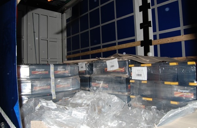 Unbekannte Täter haben in der Zeit von Donnerstag, 14. Januar 2016, 15:00 Uhr bis Freitag, 15. Januar 2016, 05:00 Uhr, aus einem auf der A6, Parkplatz "Schwarzbachwiesen", abgestellten Sattelzug aus Osteuropa 70 Autobatterien gestohlen. Die Diebe schlitzten die Plane des Aufliegers auf und entwendeten von der auf Paletten stehenden Ladung 70 original verpackte Starterbatterien. Aufgrund der Anzahl der gestohlenen Gegenstände ist davon auszugehen, dass diese vermutlich mit einem Kleintransporter abtransportiert wurden. Zeugen, die Hinweise auf verdächtige Personen und/oder Fahrzeuge geben können, werden gebeten, sich unter der Rufnummer 0631 3534-0 mit der Polizeiautobahnstation Kaiserslautern in Verbindung zu setzen.