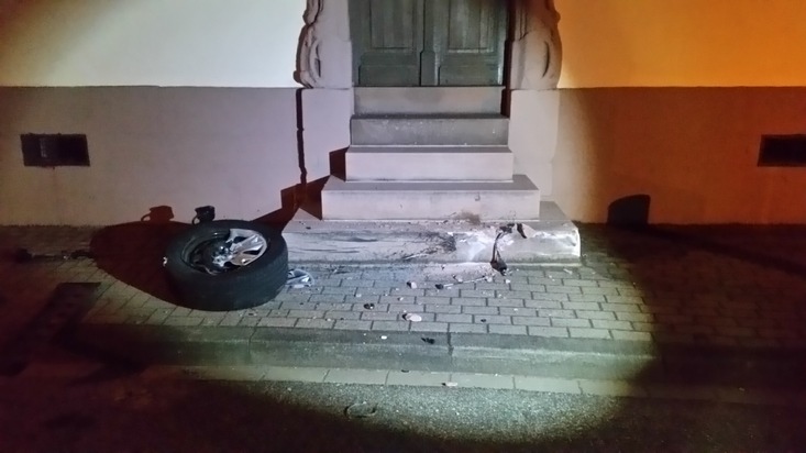 Ein Gesamtschaden von rund 7.000 Euro entstand in den frühen Morgenstunden bei einem Verkehrsunfall in Bann, als ein alkoholisierter Pkw-Fahrer in der Hauptstraße nach rechts von der Fahrbahn abkam und ein Haus beschädigte. Dabei wurde das rechte Vorderrad abgerissen, so dass eine Weiterfahrt nicht mehr möglich war. Dem Verursacher wurde eine Blutprobe entnommen.