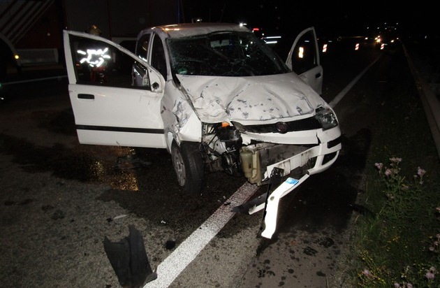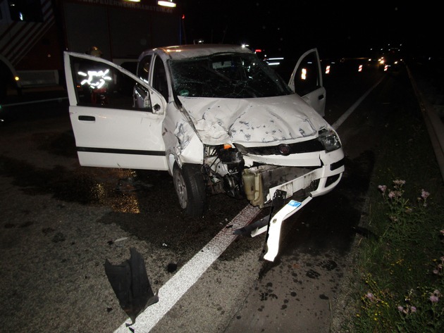 Am Abend des 24.7.2016 befuhren 2 Fahrzeuge hintereinander die Autobahn A6 in Richtung Saarbrücken. In Höhe der Abfahrt Bruchmühlbach-Miesau fuhr dann das hintere Auto auf das vordere auf. Durch diesen Aufprall wurde das vordere Fahrzeug nach rechts abgelenkt und stieß mehrmals gegen die Schutzplanke. Das hintere Fahrzeug überschlug sich und kam an der Mittelleitplanke zum Stillstand. Der auffahrende 30-jährige Fahrer wurde schwer verletzt ins Krankenhaus eingeliefert. Die beiden Insassen des vorderen Fahrzeugs erlitten nur leichte Verletzungen. Beide Fahrzeuge mussten abgeschleppt werden. Die Feuerwehr Ramstein-Miesenbach, die Autobahnmeisterei Landstuhl, wie auch das DRK waren im Einsatz. Die Fahrbahn musste zeitweise voll gesperrt werden. Der Gesamtschaden wird auf ca. 10000 EUR geschätzt./Se.