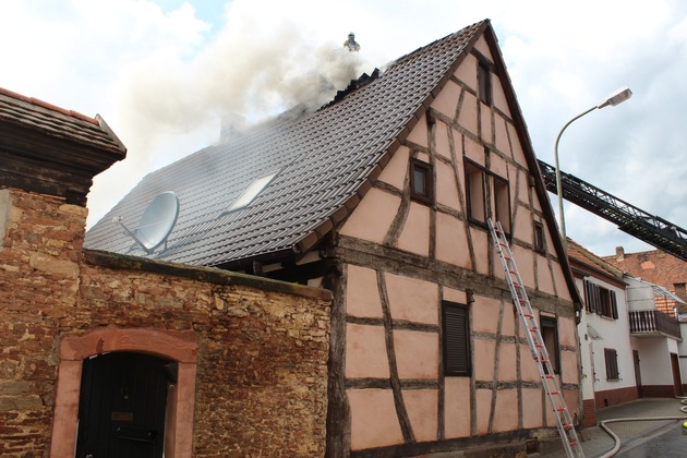 Im Verlauf eines Gewitters schlug ein Blitz in den Dachstuhl eines Wohnhauses ein. Dabei handelte es sich um ein ca. 300 Jahre altes Fachwerkhaus. Personen waren zum Zeitpunkt des Blitzeinschlags nicht im Haus.