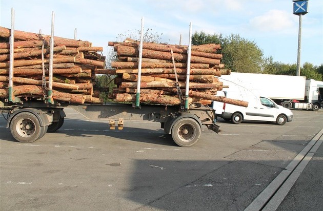 Am Nachmittag des 13.10.2016 fiel den Kontrollbeamten für Schwerverkehr ein Transporter auf,der mit Baumstämmen beladen war. Dieser befuhr die Autobahn A6 in Richtung Saarbrücken. Er konnte an der Raststätte Ramstein angehalten werden. Es wurde festgestellt, dass die geladenen Baumstämme seitlich und nach hinten viel zu weit herausragten, und auch nicht ausreichend mit Spanngurten gesichert waren. Dem Fahrer wurde die Weiterfahrt untersagt. Noch vor Ort mußte er mit einer Motorsäge die Überstände absägen und die Ladung mit zusätzlichen Gurten sichern. Dann wurde die Weiterfahrt gestattet. Eine Anzeige wird gefertigt./Se.