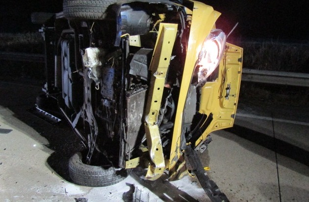 Ein bislang unbekannter Pkw-Fahrer verursachte am Sonntagabend (30. Oktober, 19:20 Uhr) auf der A6, in Höhe der Anschlussstelle Wattenheim einen Verkehrsunfall. Der Unbekannte hatte während eines Überholvorgangs in Fahrtrichtung Saarbrücken plötzlich ohne erkennbaren Grund den Fahrstreifen gewechselt. Der 25 jährige Fahrer eines Kleintransporters, der in diesem Moment neben ihm fuhr, wurde dadurch zu einem Ausweichmanöver gezwungen. Hierbei verlor er die Kontrolle über sein Fahrzeug, krachte in die Mittelschutzplanken und kippte um. Der Unfallverursacher setzte seine Fahrt fort und entfernte sich somit unerlaubt von der Unfallstelle. Die beiden Insassen des Transporters wurden durch den Unfall leicht verletzt und mit Rettungswagen in umliegende Krankenhäuser gefahren. Der entstandene Sachschaden beläuft sich auf rund 15.000 Euro. Zeugen, die sachdienliche Hinweise zu dem Verursacher des Verkehrsunfalls machen können, werden gebeten sich mit der Autobahnpolizei Kaiserslautern unter der Rufnummer 06 31 / 35 34-0 in Verbindung zu setzen.