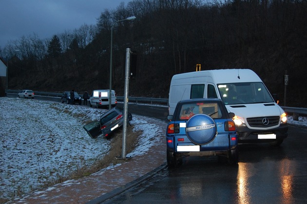 Dreißigtausend Euro Sachschaden ist die Bilanz der glättebedingten Verkehrsunfälle vom Montagmorgen. Zwischen sechs und Uhr wurden der Polizei in Lauterecken zahlreiche Verkehrsunfälle gemeldet. Ein Fahrer wollte in Lauterecken von der Hauptstraße in die Schulstraße abbiegen, fuhr jedoch aufgrund der Glätte geradeaus und stieß an einen Poller. In der Bahnhofstraße rutschte ein weiterer Verkehrsteilnehmer aufgrund des Eises auf einen geparkten PKW. Gegen einen Laternenmast stieß ein Fahrer, der in der Schillerstraße von der Straße rutschte. An der Einmündung von der Hauptstraße in die Rheingrafenstraße glitt ein PKW-Fahrer samt Fahrzeug gegen ein Verkehrszeichen, in der Schlossgasse rutschte ein weiterer Fahrer gegen ein Treppengeländer. In Heinzenhausen kam es in der Hauptstraße gleich zu mehreren Unfällen: Der erste PKW-Fahrer stieß rechts gegen die Schutzplanke und kam infolge dessen von der Fahrbahn nach links ab. Ein hinzukommender Fahrzeugführer parkte sein Fahrzeug, um nach dem verunfallten Verkehrsteilnehmer zu sehen. Ein dritter Fahrer stieß mit dem geparkten Fahrzeug des Helfers zusammen. Auch dessen Fahrzeug wurde durch einen nachfolgenden vierten PKW beschädigt, der sein Fahrzeug witterungsbedingt ebenfalls nicht mehr rechtzeitig anhalten konnte. Auch in Rehborn kam ein Autofahrer auf der abschüssigen Straße "Am Hüttenbach" ins Rutschen. In der Meisenheimer Herzog-Wolfgang-Straße konnte ein Verkehrsteilnehmer sein Fahrzeug beim Einparken nicht mehr kontrollieren und schlitterte gegen ein geparktes Fahrzeug. Bei allen Unfällen entstand lediglich Sachschaden, es wurde niemand verletzt.