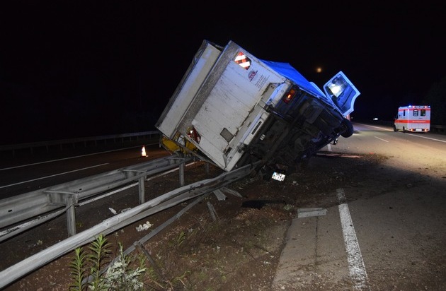 Am frühen Dienstagmorgen kam es auf der A6, kurz nach dem Autobahnkreuz Landstuhl zu einem Auffahrunfall. Ein 29 jährige Fahrer eines VW-Transporter fuhr infolge zu hoher Fahrgeschwindigkeit auf das Heck eines vorausfahrenden Lkw auf. Durch den Aufprall kam dieser von der Fahrbahn ab, krachte in die Schutzplanken und kippte um. Die beteiligten Fahrzeuge wurden so stark beschädigt, dass sie nicht mehr fahrbereit waren und abgeschleppt werden mussten. Die Fahrer wurden leicht verletzt und mit Rettungswagen in umliegende Krankenhäuser gefahren. Es entstand ein Sachschaden von ca. 70.000 Euro. Während der Bergungsarbeiten war die A6 in Fahrtrichtung Saarbrücken zeitweise gesperrt.