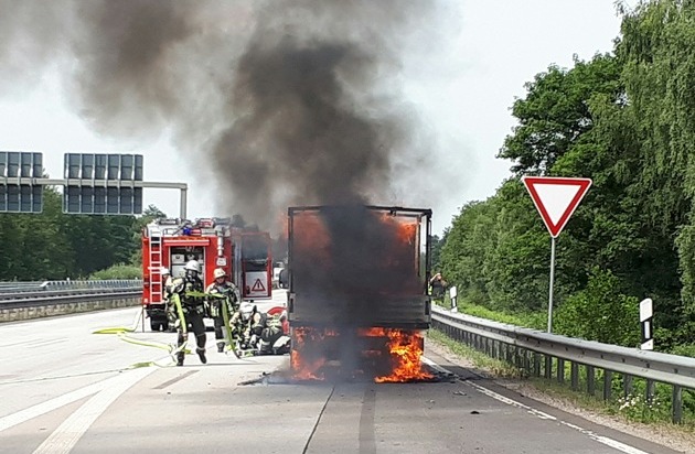 Am 07.07.2017 gegen 11:10 Uhr geriet auf der BAB6 in Fahrtrichtung Saarbrücken kurz vor dem Autobahnkreuz Landstuhl ein Klein-LKW in Vollbrand. Grund für die Brandauslösung im hinteren rechten Heckbereich war vermutlich ein technischer Defekt. Alle vier Insassen wurden nicht verletzt. Der Brand wurde sofort durch Einsatzkräfte der Feuerwehr gelöscht. Die Autobahn war für ca. 45 Minuten vollgesperrt. Es entstand Gesamtschaden in Höhe von ca. 20.000EUR.
