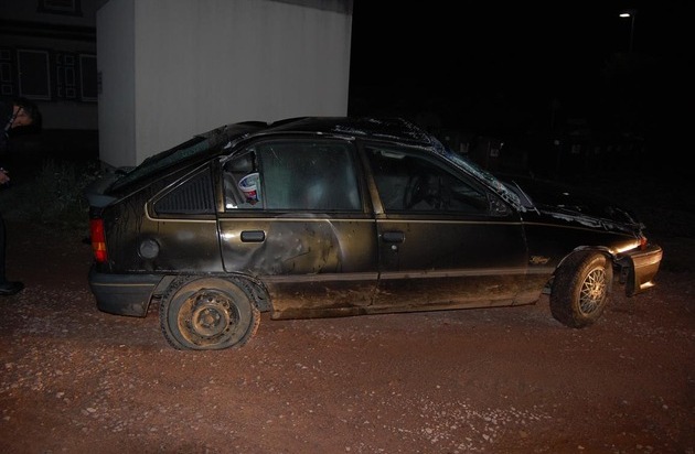 In der Nacht vom Samstag auf Sonntag kam es auf der B420 zwischen Unkenbach und Obermoschel zu einem Verkehrsunfall. Verkehrsteilnehmer meldeten Fahrzeugteile auf der B420, welche augenscheinlich auf einen Verkehrsunfall hindeuteten. Das Verursacherfahrzeug befand sich jedoch nicht mehr vor Ort. Ein bislang unbekannter Fahrzeugführer kam offensichtlich mit seinem Pkw auf gerader Strecke nach links von der Fahrbahn ab, beschädigte hierbei zwei Randsteine und überschlug sich. Danach entfernte sich der Unfallverursacher unerlaubt vom Unfallort. Der total beschädigte Pkw des Unfallverursachers, konnte kurze Zeit später in der Ortslage Obermoschel aufgefunden werden. Vom Fahrzeugführer fehlt bislang jede Spur.