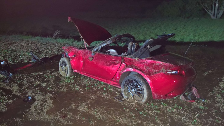 Der 19-jährige, alleinbeteiligte Unfallverursacher aus dem Kreis Kaiserslautern befuhr mit seinem Auto die L 386 in Richtung Rockenhausen und verlor auf einer Geraden die Kontrolle über sein Gefährt. Der Mazda überschlug sich mehrfach und kam nach rund 100 Metern in einem Feld zum Stehen. Durch Rettungskräfte wurde die Person aus dem Fahrzeug geborgen und mit multiplen Verletzungen ins Krankenhaus gebracht.