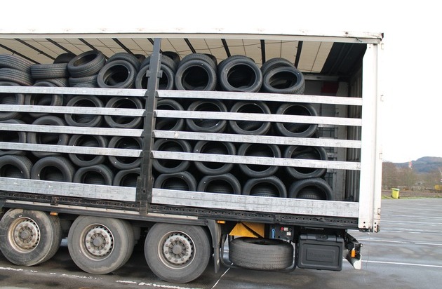 Am Mittwochnachmittag kontrollierten Beamte der Schwerverkehrsüberwachung der Zentralen Verkehrsdienste einen auffällig beladenen Sattelzug aus Osteuropa. Die Ladung, bestehend aus Pkw-Reifen, war nicht ordnungsgemäß gesichert und drückte erheblich gegen die Plane des Aufliegers. Der für den Reifentransport verwendete Sattelanhänger war völlig ungeeignet und überschritt die höchstzulässige Breite. Dem 30 jährigen Fahrer wurde die Weiterfahrt untersagt. Gegen ihn und den Fahrzeughalter wurden Bußgeldverfahren auch mit dem Ziel der Vermögensabschöpfung eingeleitet.