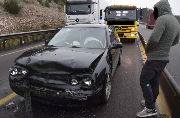Zwei leichtverletzte Personen und drei erheblich beschädigte Fahrzeuge waren die Folge eines Verkehrsunfalls, der sich am Dienstagmorgen auf der A6 zwischen Kaiserslautern/West und Kaiserslautern/Centrum zugetragen hat. Die Unfallbeteiligten Fahrzeuge fuhren hintereinander im Baustellenbereich in Fahrtrichtung Mannheim, als der Vorausfahrende im Berufsverkehr verkehrsbedingt abbremsen musste. Der nachfolgender 26 jähriger Fahrer eines BMW und ein 23 jähriger VW-Fahrer erkannten die Situation zu spät und fuhren auf die vor ihnen fahrenden Fahrzeuge auf. Der entstandene Sachschaden beläuft sich auf 26.000 Euro. Bei der Unfallaufnahme wurde die Autobahnpolizei von der amerikanischen Militärpolizei unterstützt.