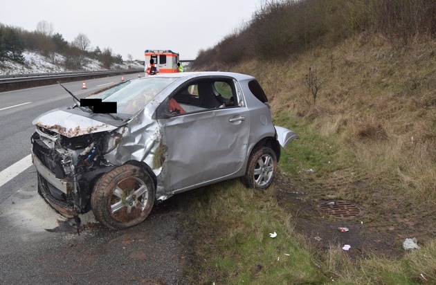 Eine 30 jährige Fahrerin eines Toyota IQ verlor am Dienstagvormittag die Kontrolle über ihr Fahrzeug. Beim Befahren der A63 zwischen den Anschlussstellen Göllheim und Winnweiler, kam sie nach rechts von der Fahrbahn ab und geriet in die unbefestigte, ansteigende Böschung. Dort überschlug sie sich mehrmals mit ihrem Fahrzeug und kam anschließend wieder auf den Rädern stehend zum Stillstand. Die Toyota-Fahrerin erlitt leichte Verletzungen und wurde mit einem Rettungswagen in ein Krankenhaus gefahren. Der entstandene Sachschaden beläuft sich auf rund 12.000 Euro.