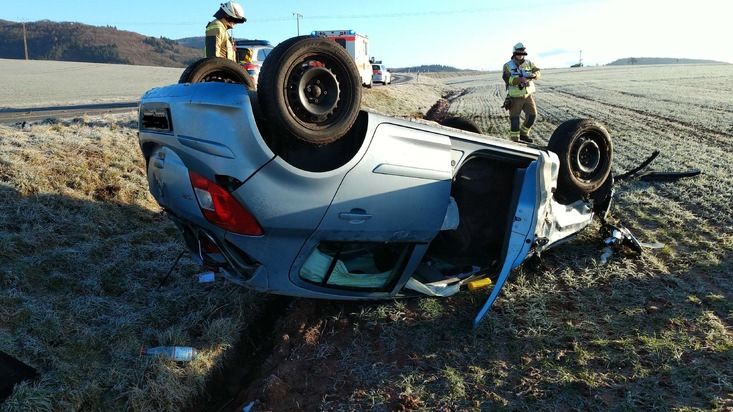 Am 13.02.2018, gegen 08:30 Uhr befuhr eine 58-Jährige mit ihrem PKW die K 4 von Imsbach kommend in Richtung Winnweiler. Unmittelbar nach der Einmündung in Richtung Winnweiler-Langmeil kam sie aufgrund nicht angepasster Geschwindigkeit bei Reifglätte mit ihrem PKW von der Fahrbahn ab. Nach einem Überschlag blieb der PKW auf dem angrenzenden Feld liegen. Die Fahrerin und die 82-jährige Mitfahrerin verletzten sich leicht und wurden mittels Rettungswagen in ein umliegendes Krankenhaus gebracht. Das nicht mehr fahrbereite Fahrzeug musste durch ein Abschleppunternehmen geborgen werden. Der Sachschaden liegt bei ca. 3000,- Euro. Vor Ort waren Polizei, Feuerwehr und DRK.