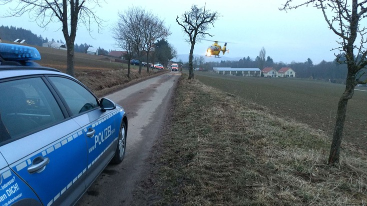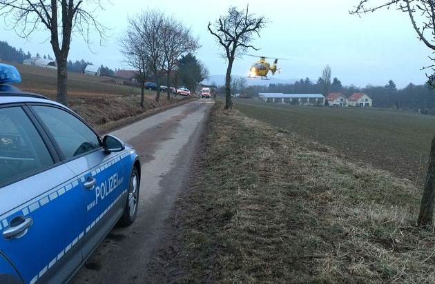 Am Sonntag, 04.03.2018, gegen 16:45 Uhr befuhr in der Gemarkung Winnweiler ein 47-Jähriger mit seinem Roller die Straße von der K 4 zum Kalheckerhof. Etwa 150 Meter vor dem Kalheckerhof kam er vermutlich aufgrund nicht angepasster Geschwindigkeit und Alkoholeinfluss mehrmals von der Fahrbahn ab und stürzte anschließend auf der Fahrbahn. Dabei zog er sich schwere Verletzungen zu, die zwischenzeitlich nicht mehr lebensbedrohend sind. Er wurde mittels Hubschrauber in eine Klinik geflogen. Eine Blutprobe wurde entnommen. Der Roller war nicht mehr fahrbereit und wurde sichergestellt, Sachschaden ca. 1000,-- Euro. Vor Ort waren auch DRK, Feuerwehr und Rettungshubschrauber.