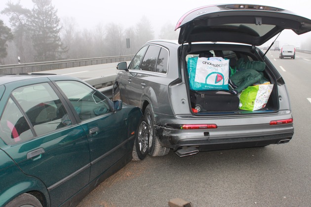 Am 31.03.2018, 09:40 Uhr fuhr am Autobahnkreuz Landstuhl ein bisher unbekannter Pkw-Fahrer von der A 62 auf die A 6 Richtung Mannheim auf. Dabei missachtete er den Vorrang des durchgehenden Verkehrs auf der A 6. Der Fahrer eines Audi musste vom rechten Fahrstreifen nach links ausweichen. Dabei stieß er mit einem BMW zusammen, der sich auf der Überholspur befand. Beide Fahrzeuge prallten anschließend gegen die Schutzplanken und kamen auf der Überholspur zum Stehen. Die Pkw waren nicht mehr fahrbereit. Es entstand ein Gesamtschaden von ca. 14 000,- EUR. Der Unfallverursacher entfernte sich von der Unfallstelle. Gesucht werden Zeugen, die Angaben zu dem Pkw machen können. Diese werden gebeten sich bei der Autobahnpolizei Kaiserslautern zu melden. Tel: 0631-35340