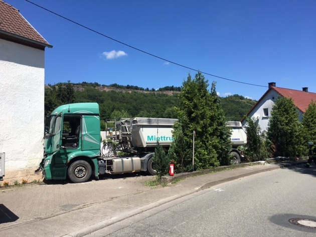 Am Mittwoch, 20. Juni 2018 gegen 09:50 Uhr, kam es in der Ortschaft Rutsweiler am Glan, Hauptstraße, zu einem schweren Verkehrsunfall. Alleinbeteiligt war ein mit Teer beladener 40-Tonner LKW, welcher laut Zeugenwahrnehmungen ungebremst gegen die Hauswand eines Anwesens fuhr. Die Unfallursache wird zurzeit noch ermittelt. Der Unfallfahrer wurde vor Ort durch den Notarzt versorgt und anschließend in das Westpfalzklinikum verbracht. Die Ortsdurchfahrt musste für den Fahrzeugverkehr voll gesperrt werden. Vor Ort zum Einsatz kam neben der Feuerwehr, Polizei, Straßenmeisterei, Rettungsdienst, THW und Notarzt auch ein Gutachter, der über das Ausmaß des Gebäudeschadens eine Aussage treffen muss.