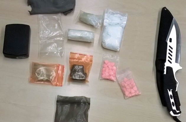 Der bereits einschlägig bekannte Mann war im Rahmen einer Streife am frühen Donnerstagabend in der Innenstadt aufgefallen. Als die Beamten ihn kontrollieren wollten, versuchte der Tatverdächtige noch etwas "loszuwerden". Wie sich heraus stellte, handelte es sich bei dem weggeworfenen Gegenstand um einen Beutel mit Amphetamin (rund 80 Gramm). Bei der weiteren Durchsuchung des 36-Jährigen und seiner Sachen wurden darüber hinaus noch Haschisch, Ecstasy und Marihuana sowie ein vierstelliger Bargeld-Betrag gefunden. Außerdem hatte er im Hosenbund ein Messer mit einer langen Klinge. Drogen, Geld und Waffe wurden sichergestellt und der Mann über Nacht bis zu seiner Vorführung in Gewahrsam genommen.