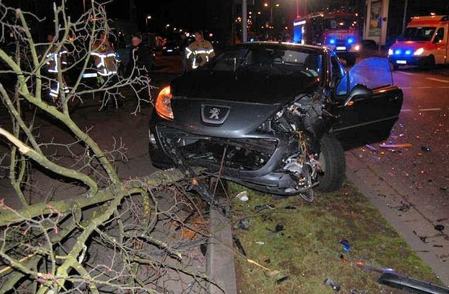 Beide Unfallfahrzeuge wurden stark beschädigt, und der Baum, gegen den der Peugeot geprallt war, musste von der Feuerwehr entfernt werden.
