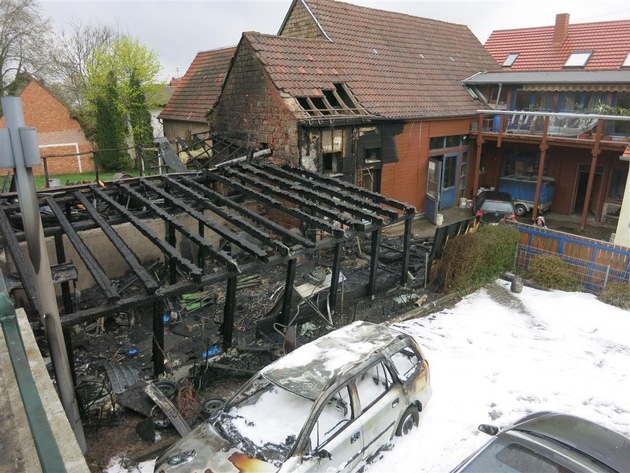 Am späten Samstagvormittag geriet ein Unterstand auf dem Gelände einer Schreinerei aus bislang ungeklärter Ursache in Brand. Der Brand griff auch auf die Außenfassade der eigentlichen Schreinerei über, konnte jedoch durch die örtlichen Feuerwehren gelöscht werden. Neben den Gebäuden wurden noch mehrere abgestellte Fahrzeuge beschädigt. Personen kamen nicht zu Schaden. Die Schadenshöhe wird auf mehrere zehntausend Euro geschätzt. Die Kriminalpolizei hat die Ermittlungen zur Brandursache aufgenommen. Aufgrund der Löschmaßnahmen war ein Teil des Ortsbereiches für den Fahrzeugverkehr vorübergehend gesperrt.