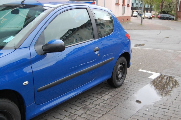 Ein unbekannter Fahrzeugführer hatte mit seinem Wagen das Auto einer 28-Jährigen beschädigt und sich dann unerlaubt vom Unfallort entfernt. Die Frau hatte ihren blauen Peugeot ordnungsgemäß geparkt. Vermutlich in der Zeit von Dienstagabend bis Samstagmittag hat der Unfallverursacher das Auto der 28-Jährigen gestreift. Der Sachschaden dürfte im mehrstelligen Euro-Bereich liegen.