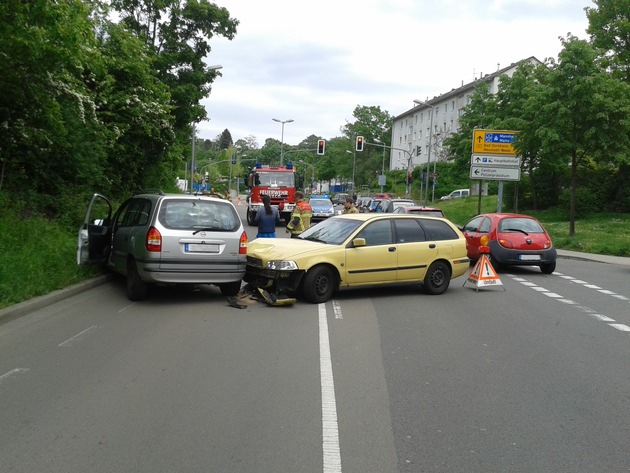 Vier Verletzte und zwei total beschädigte Fahrzeuge - das ist die Bilanz eines Verkehrsunfalls am Samstagnachmittag in der Trippstadter Straße. Im Einmündungsbereich der Buchenlochstraße/Trippstadter-Straße waren gegen 14.40 Uhr zwei Autos zusammengestoßen. Nach bisherigen polizeilichen Ermittlungen dürften dabei beide Fahrzeugführer einen Fehler gemacht haben. Die 34-jährige Fahrerin eines Volvo befuhr die Buchenlochstraße in Fahrtrichtung Trippstadter Straße. In der Trippstadter Straße hatte sich in Fahrtrichtung Zollamtstraße aufgrund der Ampel ein Rückstau gebildet. Die Volvo-Fahrerin tastete sich deshalb langsam in den Einmündungsbereich vor, um nach links in die Trippstadter Straße abzubiegen. Dort kam es schließlich zum Zusammenstoß mit einem 57-jährigen bevorrechtigten Autofahrer, der den Rückstau trotz durchgezogener Linie überholt hatte um an der Ampelkreuzung nach links in Richtung Stadtpark abzubiegen. Bei dem Unfall wurden vier Insassen des Volvo leicht verletzt und vorsorglich vom Rettungsdienst in ein Krankenhaus gebracht. Beide Unfallfahrzeuge mussten abgeschleppt werden. Der Sachschaden wird auf insgesamt etwa 9.000 Euro geschätzt.