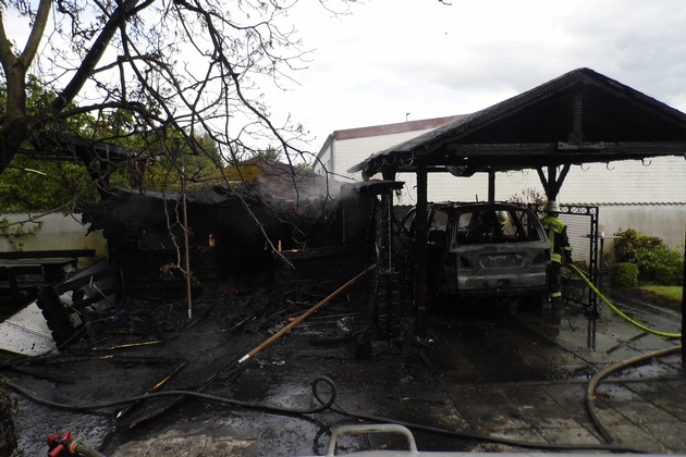 Am 15.05.16 gegen 12:30 Uhr kam es zu einem Brand eines Carports in Landstuhl in der Bahnstraße. Bei dem Vorfall brannten der Carport, ein Ford Galaxy und ein angrenzendes Gartenhäuschen komplett ab. Der Brand wurde durch die Freiwillige Feuerwehr Landstuhl gelöscht. Zur Brandursache kann die Polizei Landstuhl zurzeit keine Angaben machen. Die Ermittlungen dauern an.