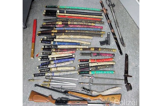 Weil zu erkennen war, dass von der kaputten Scheibe noch größere Fragmente im Fensterrahmen hingen und drohten , auf die Straße zu fallen, musste die Wohnung zwecks Gefahrenbeseitigung betreten werden. In den Räumen entdeckten die Beamten ein "Waffenarsenal" - sichergestellt wurden 28 Samurai-Schwerter, zwei Macheten, acht größere und kleinere Schwerter, ein Dolch, zwei Luftgewehre und eine Schreckschusspistole. Ob Verstöße gegen das Waffengesetz vorliegen, wird derzeit geprüft.