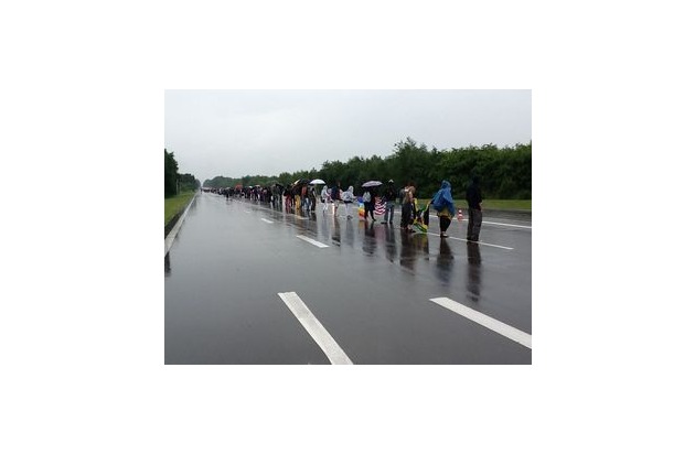 Am heutigen Tag führte die Kampagne "Stopp Ramstein" mehrere Friedensveranstaltungen in und um Kaiserslautern durch. Trotz des durchwachsenen Wetters nahmen an der Veranstaltung in Kaiserslautern etwa 600 Personen, an der Veranstaltung in Ramstein circa 500 Menschen und an der Veranstaltung in Landstuhl ungefähr 300 Personen teil. Im Anschluss wurde gegen 13:30 Uhr eine Menschenkette gebildet, die von der Stadthalle in Landstuhl bis zum Neuen Markt in Ramstein verlief. Die Menschenkette konnte mit weiteren Teilnehmern aufgebaut und für ca. 8 Minuten über weite Strecken geschlossen werden. Vereinzelte Teilnehmer stellten sich auch in Kindsbach auf, konnten jedoch keinen Anschluss an die lange Menschenkette herstellen. Danach trafen sich alle Veranstaltungsteilnehmer in der Nähe des Westgates in Ramstein zu einer Abschlusskundgebung, an der etwa 2500 - 3000 Personen teilnahmen. Bis auf wenige geringfügige Verkehrsbeeinträchtigungen während des Schließens der Menschenkette sowie im Bereich des Kindsbacher Kreisels auf der Zufahrt zur Airbase verlief die gesamte Veranstaltung störungsfrei. Gegen 17:45 Uhr wurde die Abschlusskundgebung beendet.