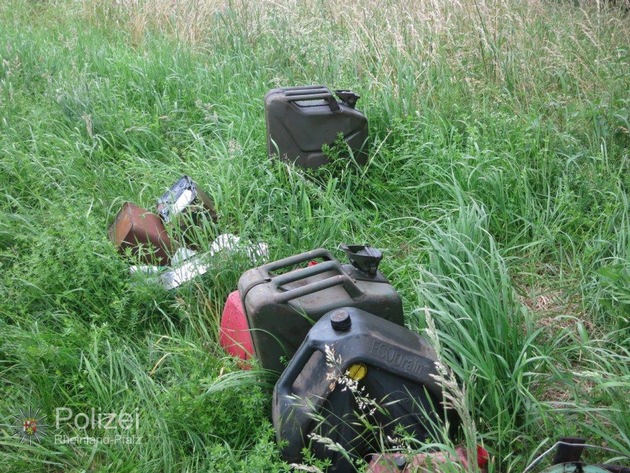 An einem Feldweg parallel zur B 270 haben Unbekannte Kanister mit Altöl, Bremsflüssigkeit und Lacken abgestellt. Zum Glück ist nicht ins Erdreich eingedrungen. Der Tatzeitraum kann von Sonntagmittag 14 Uhr bis Montagabend 17 Uhr eingeschränkt werden. Bislang ist nicht bekannt, wer die Kanister dort abgestellt hat. Die Kriminalpolizei nimmt Hinweise unter der Tel.: 0631-3692620 entgegen.