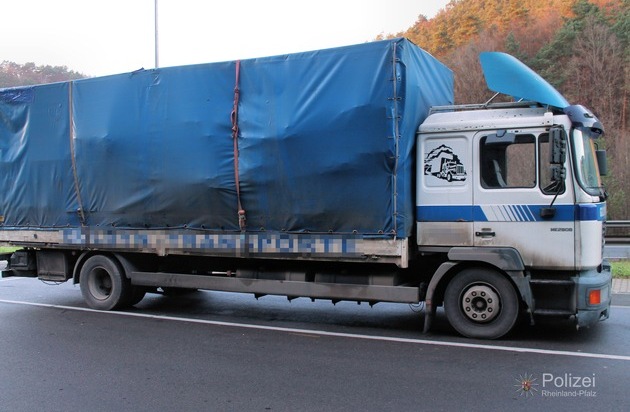 Nicht schlecht gestaunt haben Beamte des Schwerverkehrkontrolltrupps bei einer Kontrolle am Mittwochnachmittag in der Südwestpfalz. Gegen 15.45 Uhr fiel dem Team auf der B10 ein Lkw auf, der einen ziemlich maroden Eindruck machte und dessen Plane deutlich ausgebeult war. Allem Anschein nach wurde die Ladung nur durch das Umspannen von zwei Gurten zusammengehalten.