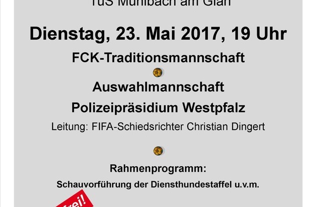 POL-PPWP: Benefizspiel - Polizisten kicken gegen FCK-Oldies