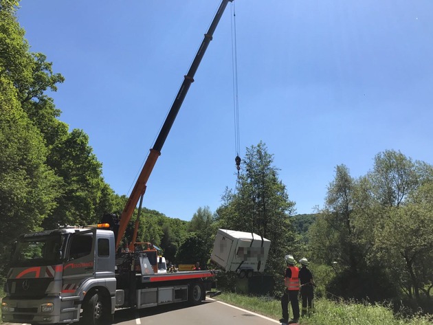 Ein Kran war erforderlich, um den Kleintransporter und den Anhänger vom Ufer der Lauter zu bergen. Hierzu sperrten Einsatzkräfte von Feuerwehr und Polizei zeitweise die Bundesstraße. Der Unfallschaden wird auf mehrere 10.000 Euro geschätzt. Es dürfte davon auszugehen sein, dass der Fahrer des Gespanns im Kurvenbereich zu schnell unterwegs war.