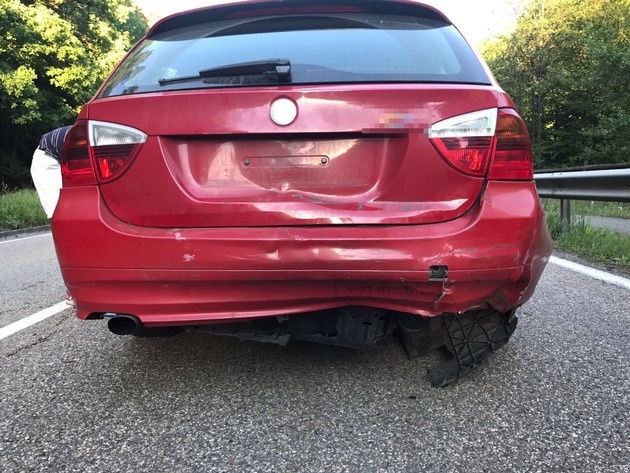 Ein Autofahrer fuhr gegen 19:30 Uhr offensichtlich mit unangepasster Geschwindigkeit auf der B 37 in Richtung Frankestein. Unmittelbar nach einem Kurvenbereich kollidierte sein VW Passat mit einem vorausfahrenden BMW. In dem Fahrzeug saß eine junge Familie. Der Passatfahrer bremste zwar noch, konnte den Zusammenprall allerdings nicht verhindern. Seine Bremsspur betrug 48 Meter. Ein Kleinkind, dessen Vater und die schwangere Mutter sowie der Unfallverursacher wurden vorsorglich vom Rettungsdienst ins Krankenhaus gebracht. Die Feuerwehr Hochspeyer war im Einsatz und sicherte die Unfallstelle. Für die Dauer der Unfallaufnahme war die Bundesstraße gesperrt.