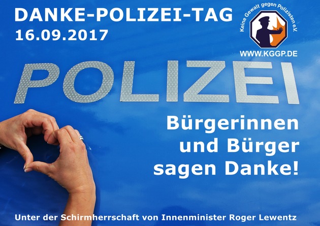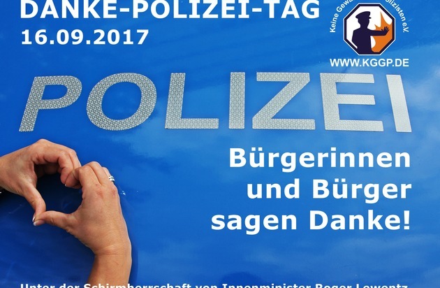 Der "Danke-Polizei-Tag" findet 2017 - der angelsächsischen Tradition folgend - am Samstag, 16. September, statt. An diesem ""Say thank you to a police officer day" sind Bürgerinnen und Bürger herzlich eingeladen, "ihre" Polizeibeamtinnen und Polizeibeamten auf den Dienststellen aufzusuchen und ihnen für deren Einsatz zu danken.