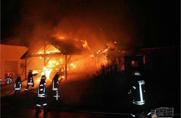 Zu einem Brand ist es am späten Montagabend in der Straße "Am Kellerhäuschen" gekommen. Kurz vor 23 Uhr wurde das Feuer entdeckt. Es war aus noch ungeklärter Ursache in einem Carport ausgebrochen. Durch den starken Wind, der zu dieser Zeit herrschte, griffen die Flammen auch auf das daneben stehende Wohnhaus über. Zwei Fahrzeuge, die in dem Carport abgestellt waren, brannten aus. Der Carport selbst fiel während der Löscharbeiten in sich zusammen.