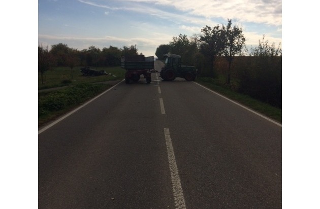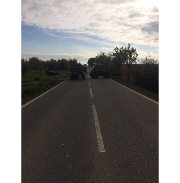 Ein Verkehrsunfall mit drei Schwerverletzten ereignete sich heute Mittag gg. 13.50 Uhr auf der Bundestraße 38. Der Fahrer eines Traktors mit Anhänger war zunächst von einem Wirtschaftsweg nach links in Richtung Schweigen Rechtenbach auf die B 38 aufgefahren und wollte kurz danach wieder nach links in einen anderen Wirtschaftsweg einbiegen. Während dieses Abbiegevorganges wurde er von einem 73-jährigenFahrer eines Mercedes überholt. Der Mercedes prallte gegen das linke Vorderrad des Traktors und wurde durch die Wucht des Aufpralls hochgeschleudert, überschlug sich und kam links der Fahrbahn zum Liegen. Der Traktor wurde durch den Aufprall um 90° gedreht. Der Fahrer des Traktors blieb unverletzt. Der Fahrer des Mercedes, sowie die beiden Mitfahrerinnen, 64 und 69 Jahre alt, kamen schwerverletzt in umliegende Krankenhäuser. Lebensgefahr besteht bei den verletzten Personen nicht. Die Gesamtschadenshöhe wird auf ca. 50000.- EUR geschätzt. Während der Unfallaufnahme und den Aufräumarbeiten war die B 38 bis 18:15 Uhr voll gesperrt. Der Verkehr wurde örtlich umgeleitet. Die Ermittlungen bzgl. der Unfallursache dauern an.