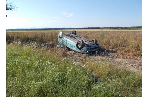 Hatzenbühl; Am 20.07.2016 befuhr um 17:57 Uhr eine PKW Fahrerin mit ihren drei Kindern im Alter von 4, 6 und 7 Jahren, die K11 in Richtung Hayna. Als die Fahrerin einem der Kinder ein heruntergefallenes Bonbon reichen wollte, verlor sie die Kontrolle über ihr Fahrzeug und kam von der Fahrbahn ab. Hier überschlug sich das Fahrzeug im Acker. Die Kinder blieben durch den Unfall unverletzt. Die 45-jährige Fahrerin erlitt mehrere Prellungen und eine Schnittverletzung.