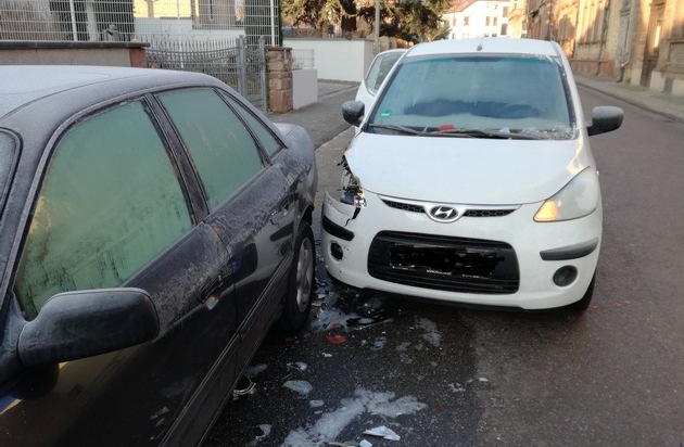Eine 54-jährige PKW-Fahrerin aus der Verbandsgemeinde Edenkoben befuhr am 30.12.2016 gegen 09:45 Uhr die Weinstraße in Edenkoben von der Radeburger Straße aus kommend. Aufgrund der frostigen Temperaturen war die Frontscheibe vereist und die Sicht der Fahrzeugführerin eingeschränkt. Hierdurch übersah die Fahrzeugführerin einen am rechten Fahrbahnrand ordnungsgemäß geparkten PKW und fuhr ungebremst auf diesen auf. Der PKW der Unfallverursacherin war nicht mehr fahrbereit und musste abgeschleppt werden. Es entstand ein Schaden von insgesamt 5000 Euro. Die Unfallverursacherin wurde gebührenpflichtig verwarnt.
